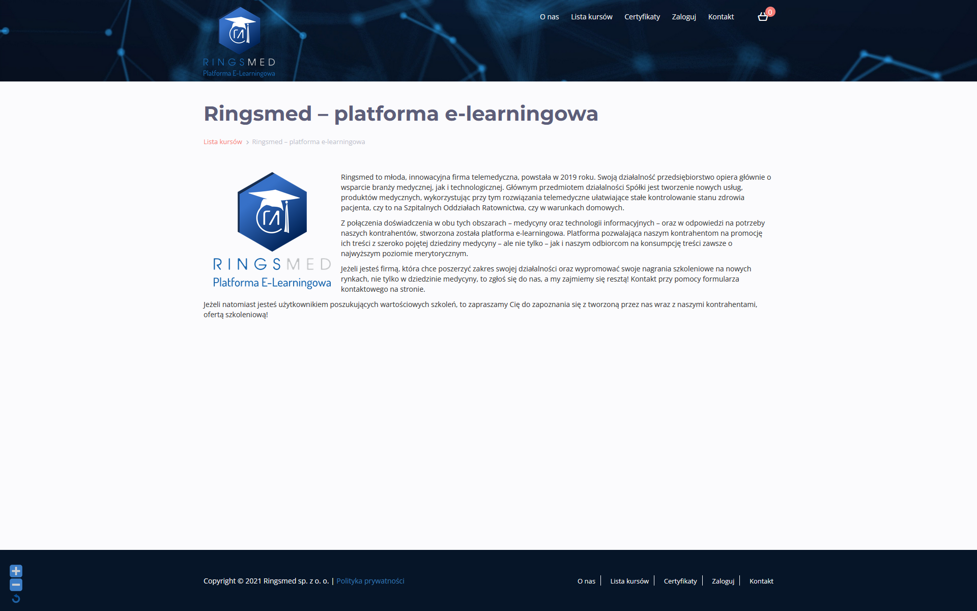 Web Layouts: Ringsmed - Platforma E-Learningowa - 2021